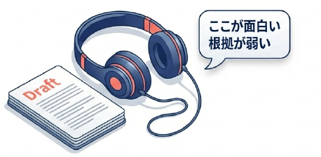 自分のブログ記事や企画書を「ラジオ」として聞いてみましょう。「ここは面白いね」「でも、根拠が弱いんじゃない?」といった第三者視点の会話を聞くことで、黙読では気づけない論理の飛躍や説明不足を発見できます。